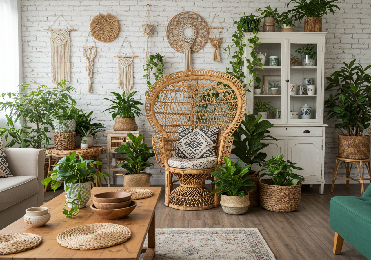Bohemian interior design is all about a free-spirited and eclectic approach. It embraces a mix of colours, patterns, and textures, often drawing inspiration from various cultures and eras. Bohemian spaces are characterized by a relaxed, laid-back vibe with an emphasis on natural materials, such as wood and textiles. It's a style that encourages creativity and self-expression, making it perfect for those who appreciate a boho-chic, unconventional look.For a Bohemian holiday look, embrace the eclectic and free-spirited vibe. Mix and match various ornaments, colours, and textures. Use bright, vibrant hues and patterns that reflect your personality. Hang strings of colourful lights and create a cozy, layered atmosphere with throw blankets and pillows. Incorporate natural elements like feathers, macramé, and handmade decorations for a relaxed, boho-chic holiday setting.