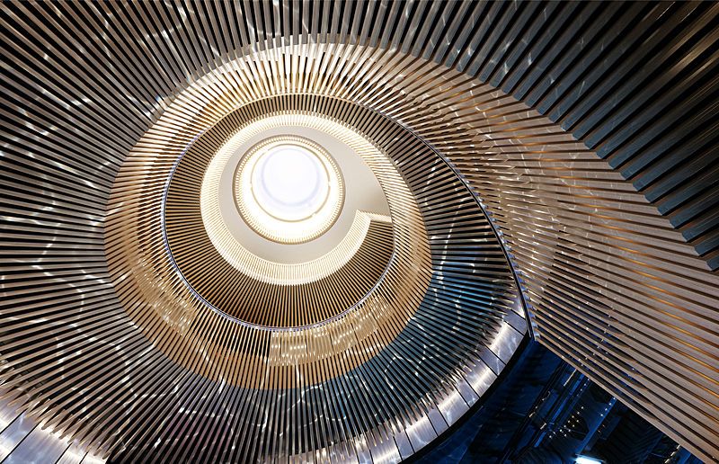 Last but not least, the circular staircase situated at AQUA’s core is one of its defining features, which winds down from the top deck to the lower deck where two large liquefied hydrogen tanks are revealed behind glass in a celebration of the yacht’s sustainability.